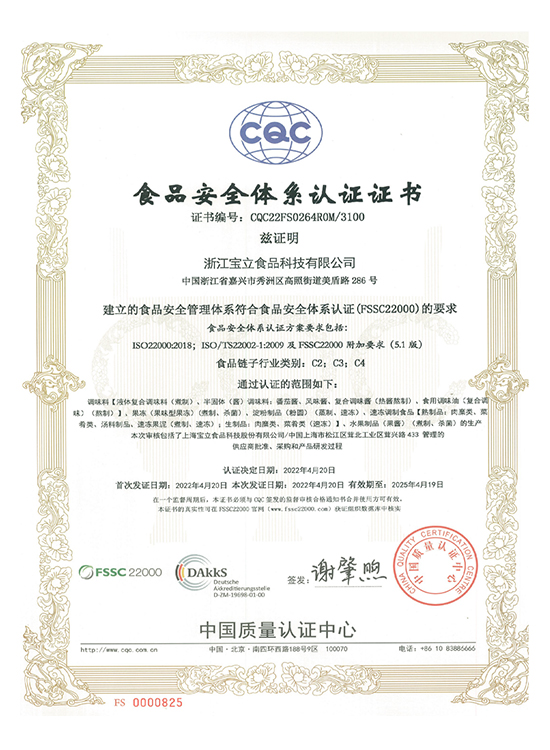 The workshop adopts advanced design concepts: isolation of raw and cooked areas, quantitative management, reasonable layout, complete functions; Follow the standard management system, including the source control, process monitoring, pre-factory inspection, after-sales tracking, ensuring product safety and quality through whole-process monitoring; Obtained FSSC22000, HACCP, ISO9001 and other authoritative quality management system certification.